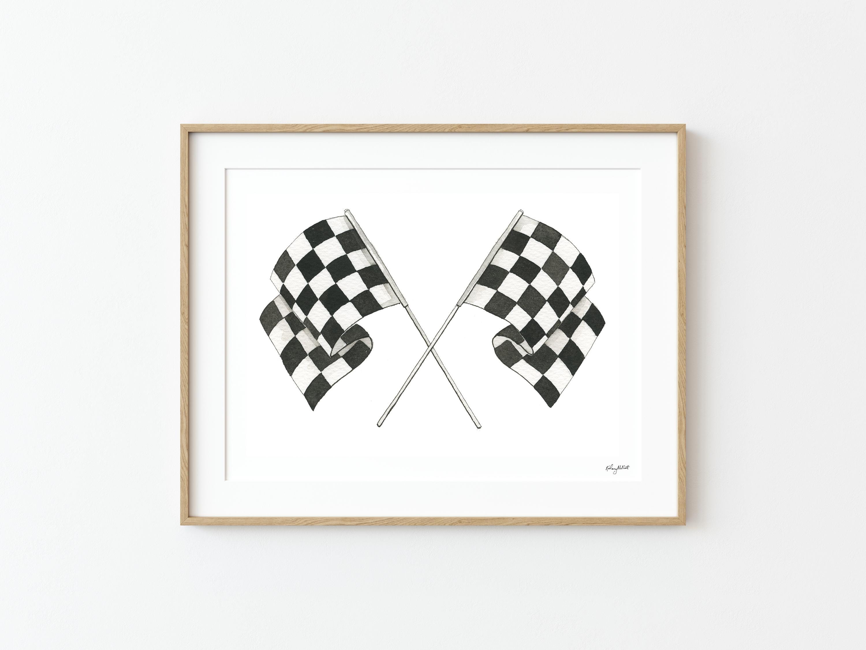 Rev up your little one’s room with this black and white checkered race flags art print! Perfect for kids who love cars, racing, and all things fast, this print adds a cool, classic touch to any boy’s bedroom or playroom. A fun way to celebrate speed and adventure in style.