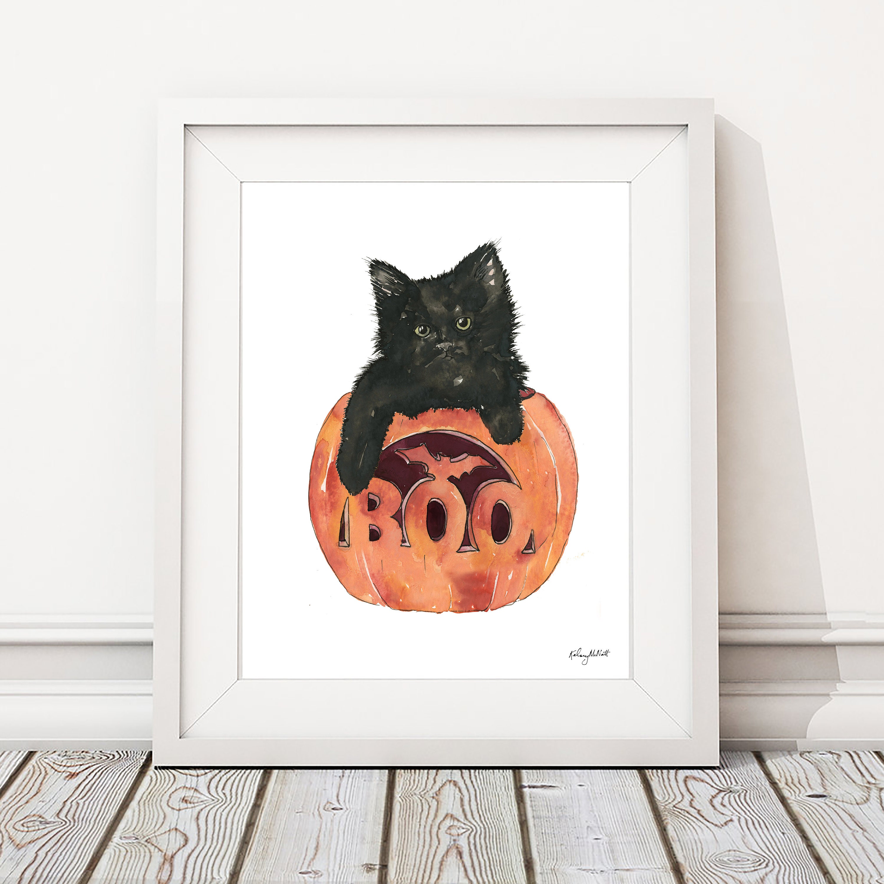 Pumpkin Pets Cat Print • Fall Decor Wall Art • Watercolor Painting
